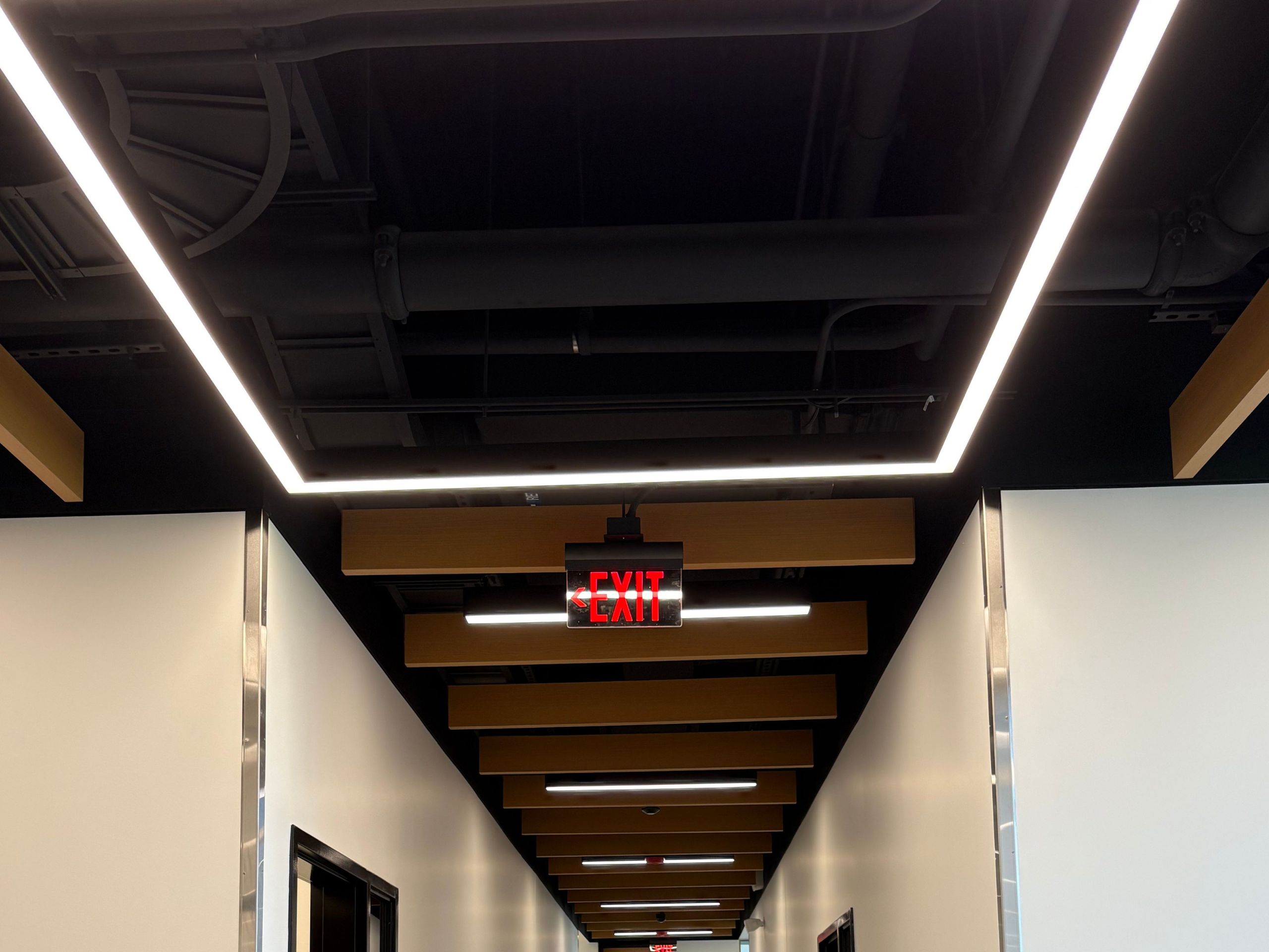 Paired with it, Kinzler Materials also delivered CertainTeed Symphony F ceiling tiles, offering excellent sound absorption, a clean aesthetic, and resistance to mold and mildew. These ceiling tiles are ideal for office and public-use spaces.